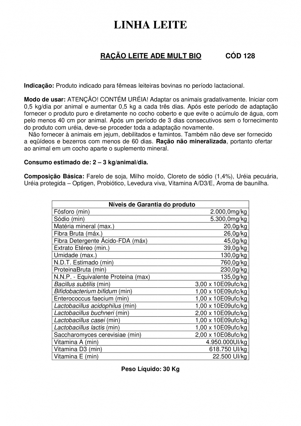 RAÇÃO LEITE ADE MULT BIO