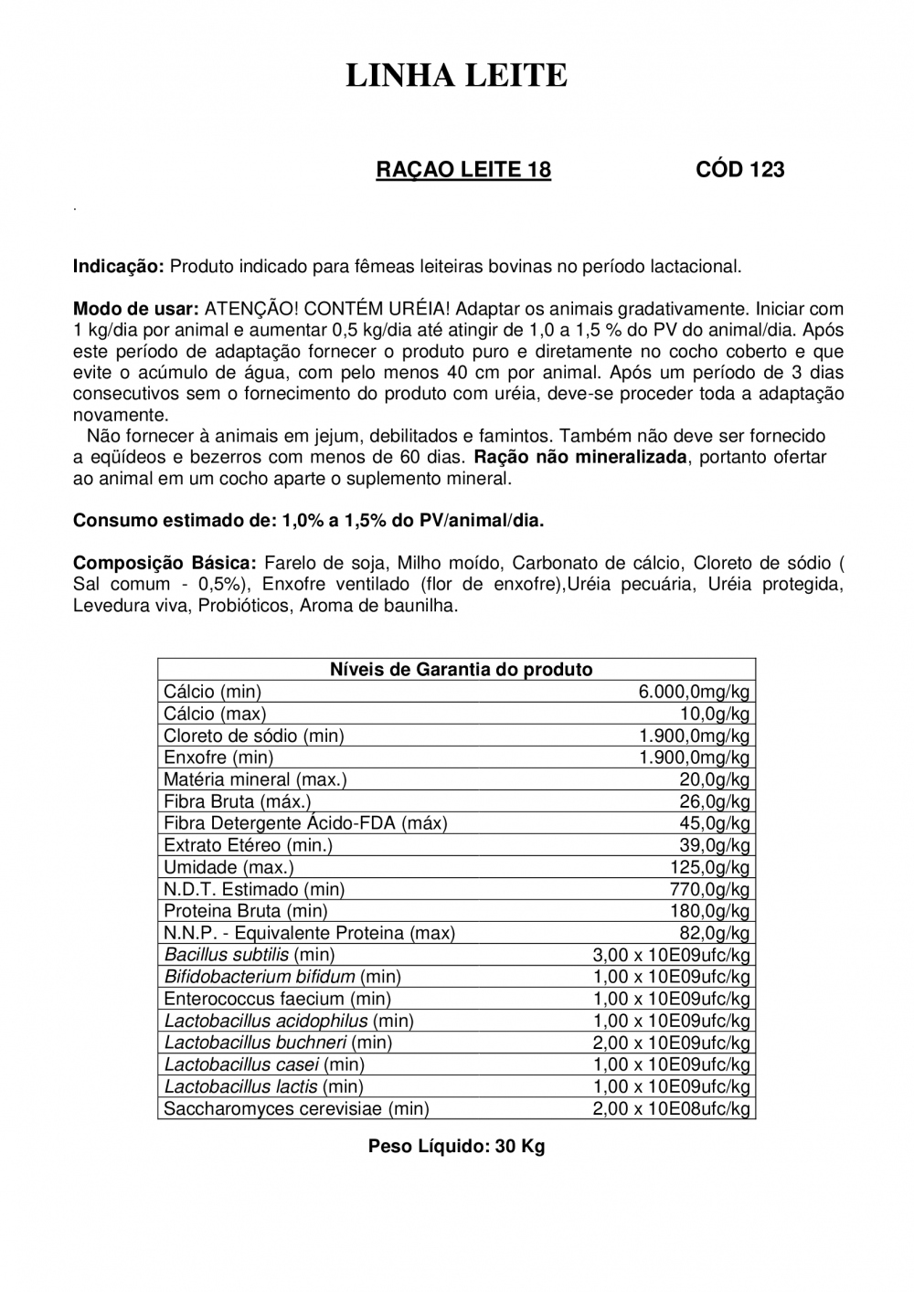 RAÇÃO LEITE 18