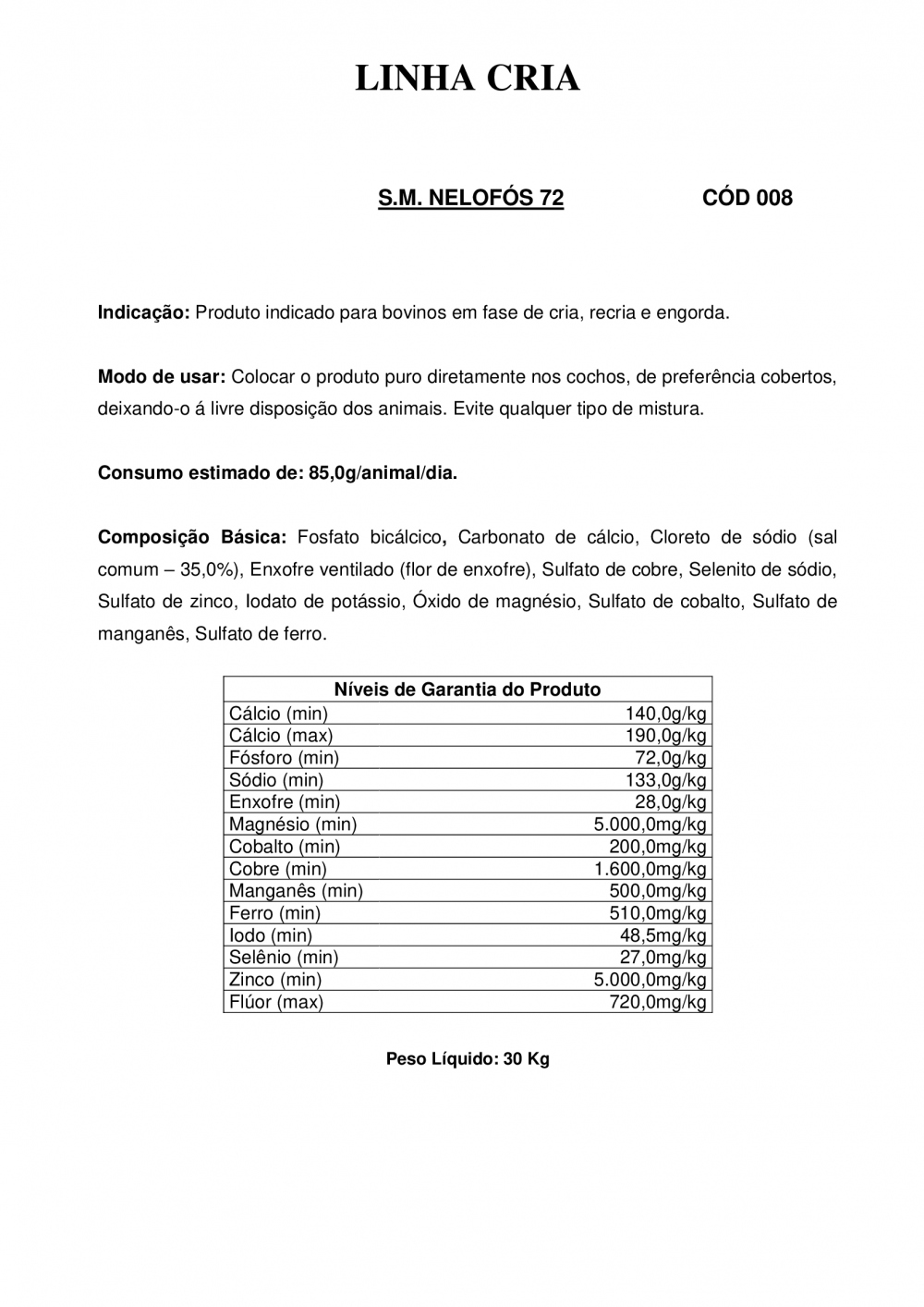 SM NELOFÓS CRIA RECRIA 80
