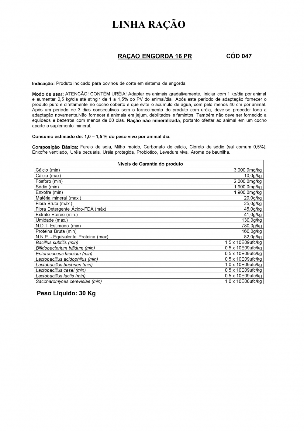 RAÇÃO ENGORDA 16 PR
